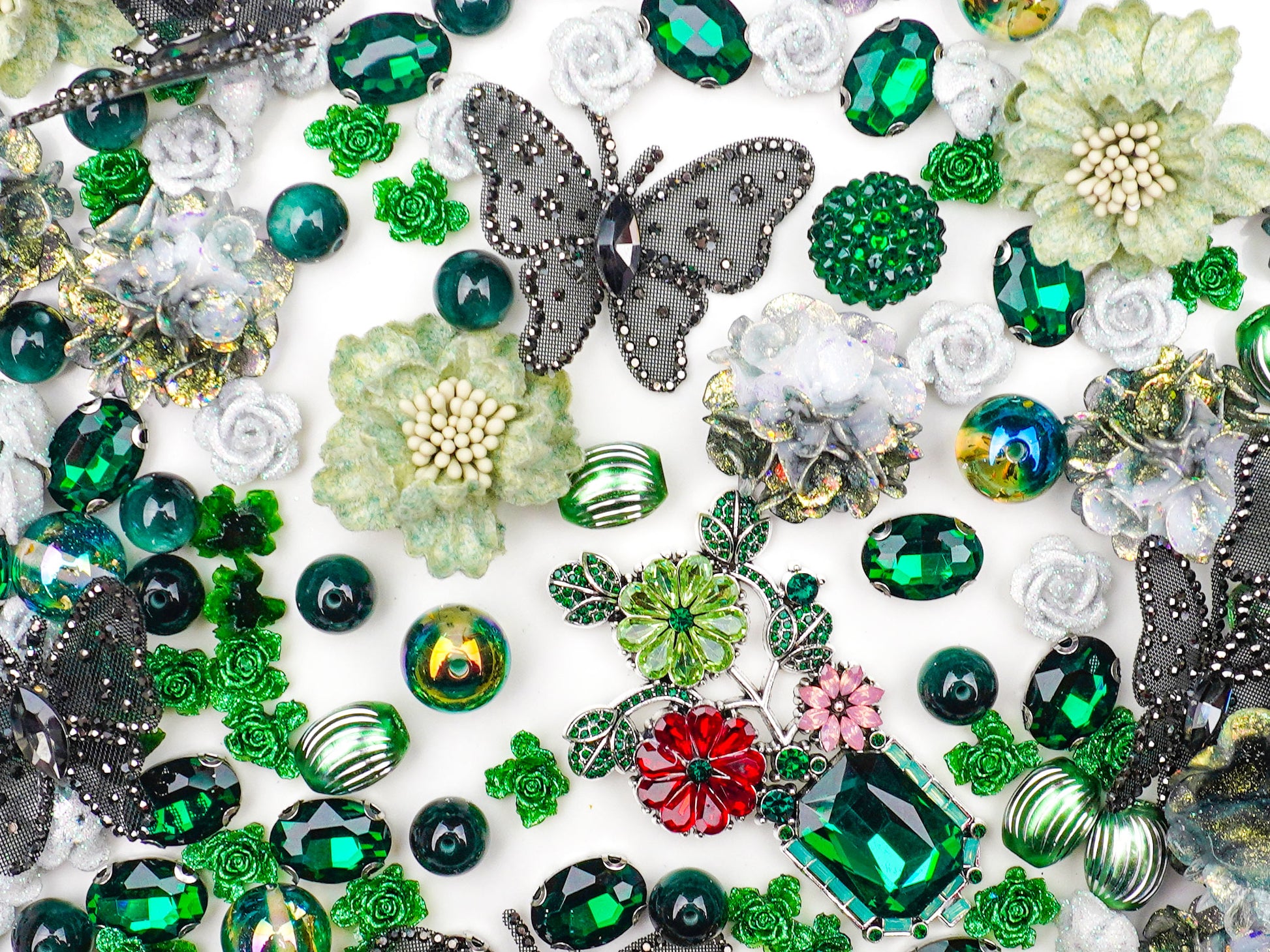 Each charm carries the essence of nature’s hidden treasures — glimmering leaves, rose details, and gem-like textures that sparkle like dew in morning light. It’s a perfect fusion of nature’s calm and vintage opulence, ideal for designs that whisper elegance and wonder. 🍃💚