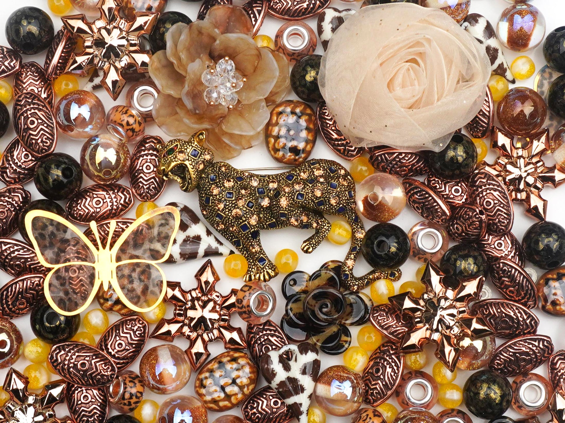 Channel your inner CEO with Bold Ambition, the mix that’s making a serious statement this season. 🐆 Centered by a stunning, jewel-encrusted leopard and draped in rich tortoiseshell and bronze tones, this curation is pure vintage luxury with a modern, edgy twist. ✨ Whether you’re layering chunky "Old Money" necklaces or crafting a fierce bag charm, these pieces bring that fearless, front-row energy to every DIY project. 💅 Unleash your wild side and build something legendary—because you were born to stand out, not blend in! 🔥