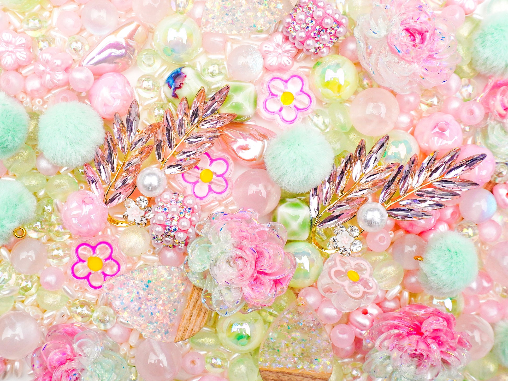 This collection captures the beauty of spring in a dreamy, retro style—glittery resin blooms, candy-colored beads, and soft iridescent textures add sweetness, while golden branches and delicate shapes bring a touch of timeless elegance. It’s playful yet refined, perfect for creating accessories that whisper enchantment. 🌺💫