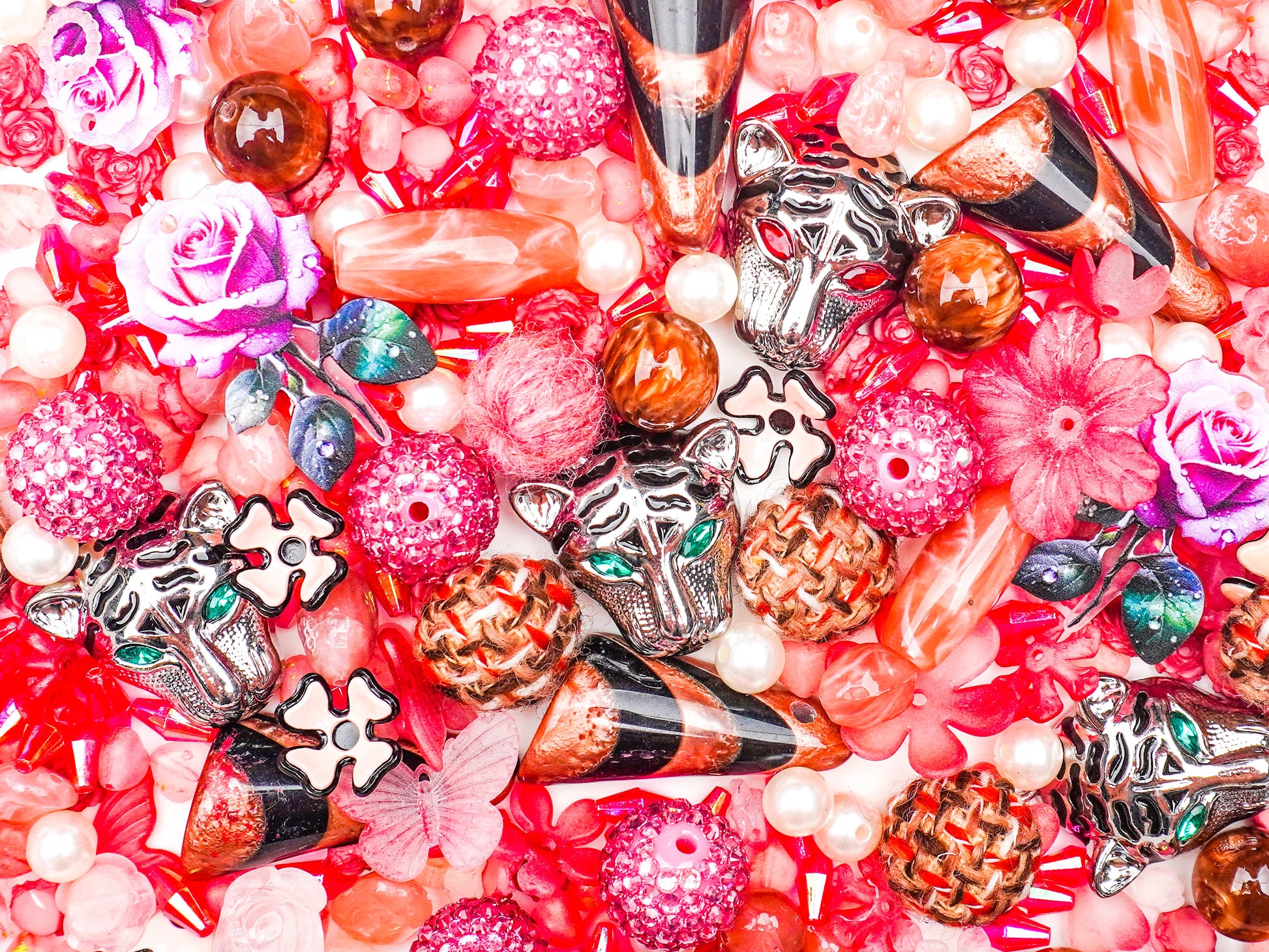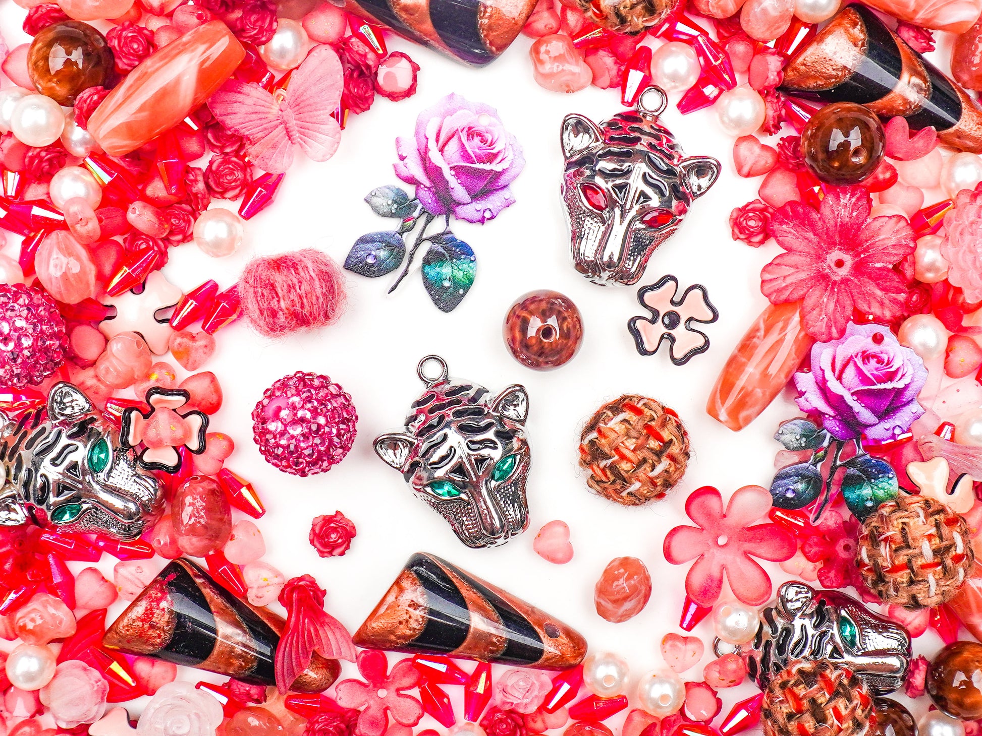 A fierce yet romantic blend, Burning Rose is a set that captures passion and power in every detail. Fiery red tones mix with deep pinks and bold metallic tiger charms, while delicate roses and floral accents add a touch of softness. Each piece feels like it’s born from a love story set aflame, where wild energy and elegance dance together.