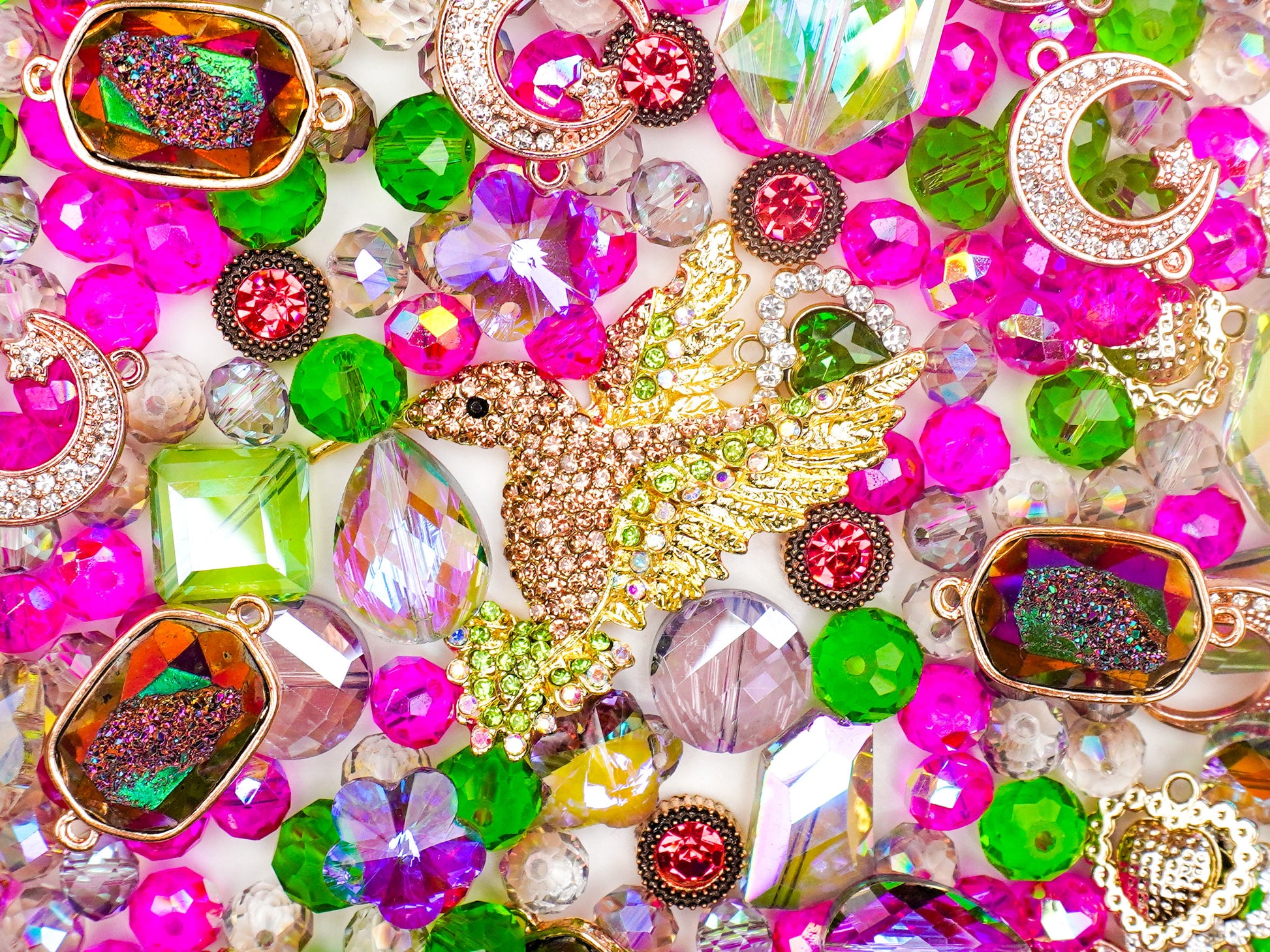 The iridescent geometric gems give it that sugary, candy-coated finish perfect for your next DIY project. Whether you’re planning a festival fit or just love that tropical retro aesthetic, this mix is a total mood booster.