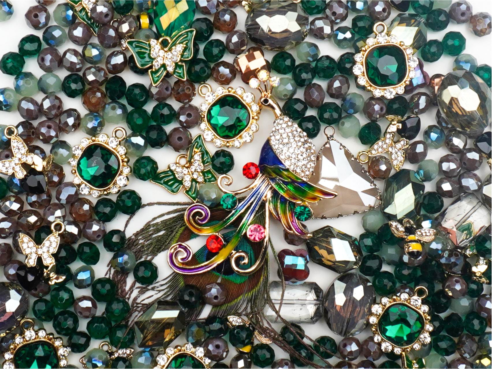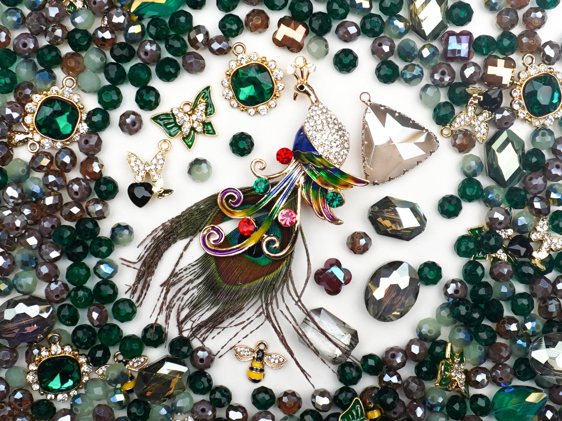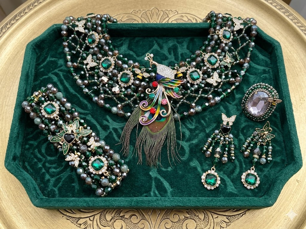 This collection is perfect for creating your own bespoke jewelry pieces that tell a story. Whether you're dreaming up a cascading statement necklace fit for a forest queen or stacked bracelets with serious boho-chic appeal, 'Forest Fable' has everything you need. The mix of genuine feather texture, intricate enamel work, and a dazzling array of emerald and crystal stones makes this selection feel like a found antique box of treasures. It's a vibe that's totally unique and so easy to style for a look that's both dramatic and charmingly playful. 🌿