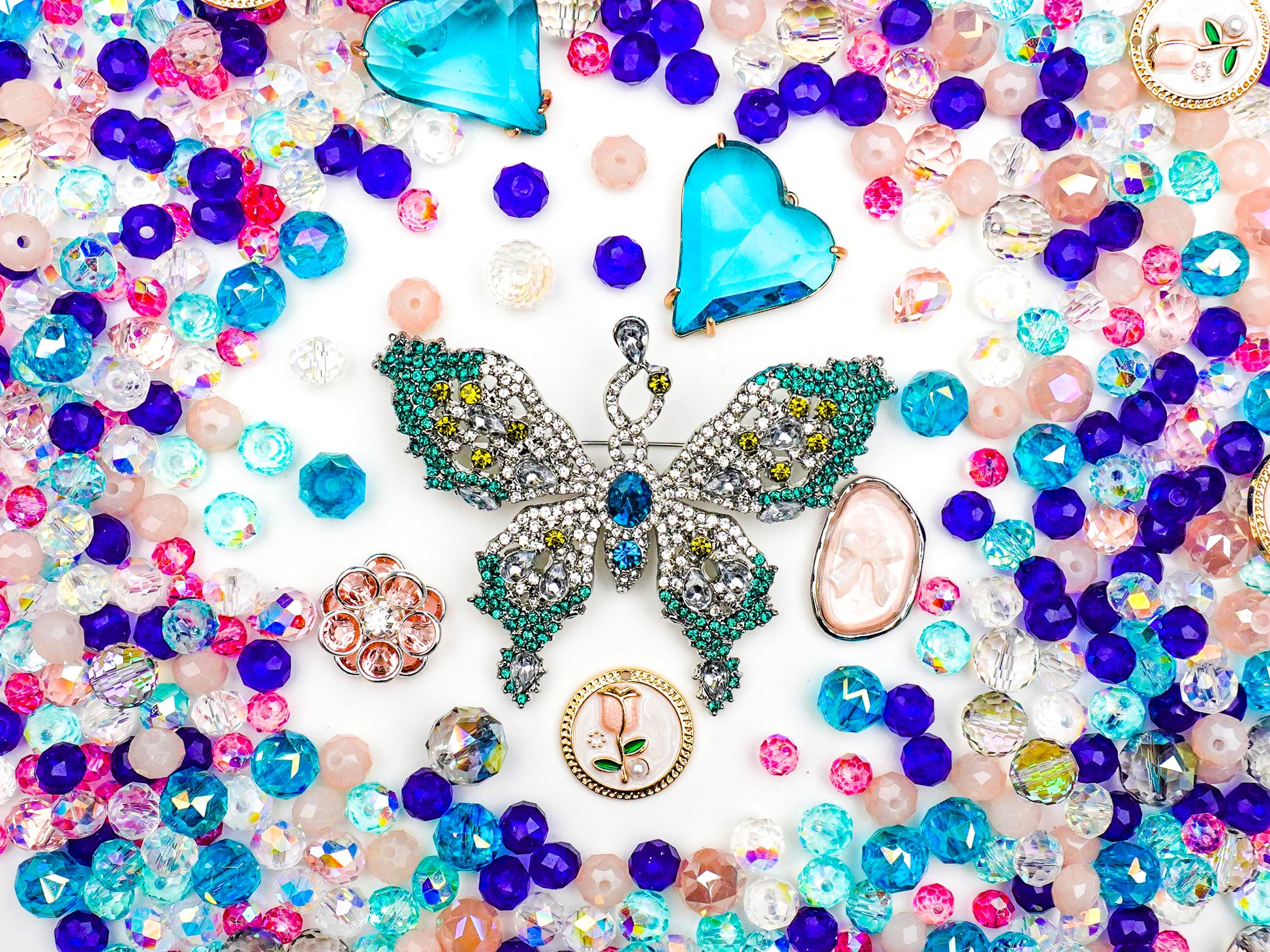 This collection is the ultimate "Coquette" meets "Y2K" crossover, featuring juicy blue heart gems, dainty rose enamel charms, and romantic pink bow cameos. 🌹🎀 It’s playful, fresh, and undeniably chic. Whether you’re crafting a statement necklace or a cute charm bracelet, this mix brings that high-fashion energy to every look.