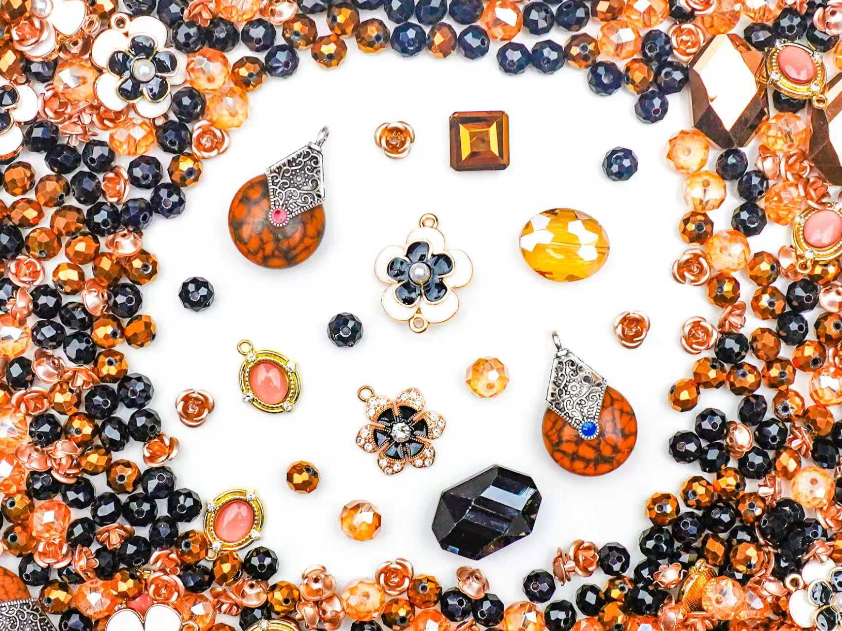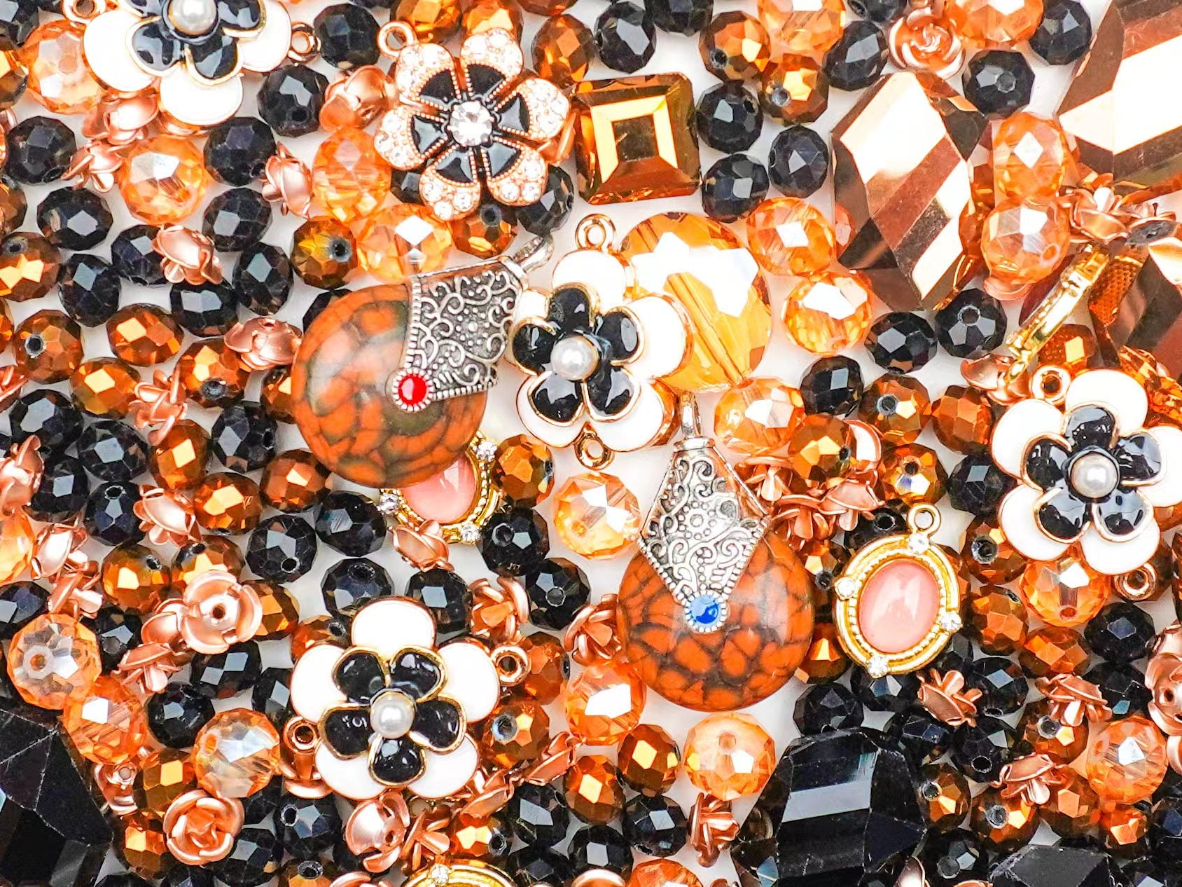 Shimmering bronze beads, glossy black facets, and soft peach accents bring richness and contrast, creating that nostalgic “old-movie countryside” color palette. Every charm—from the carved flowers to the gemstone-style centers—adds personality and warmth, perfectly matching the Country Retro name.