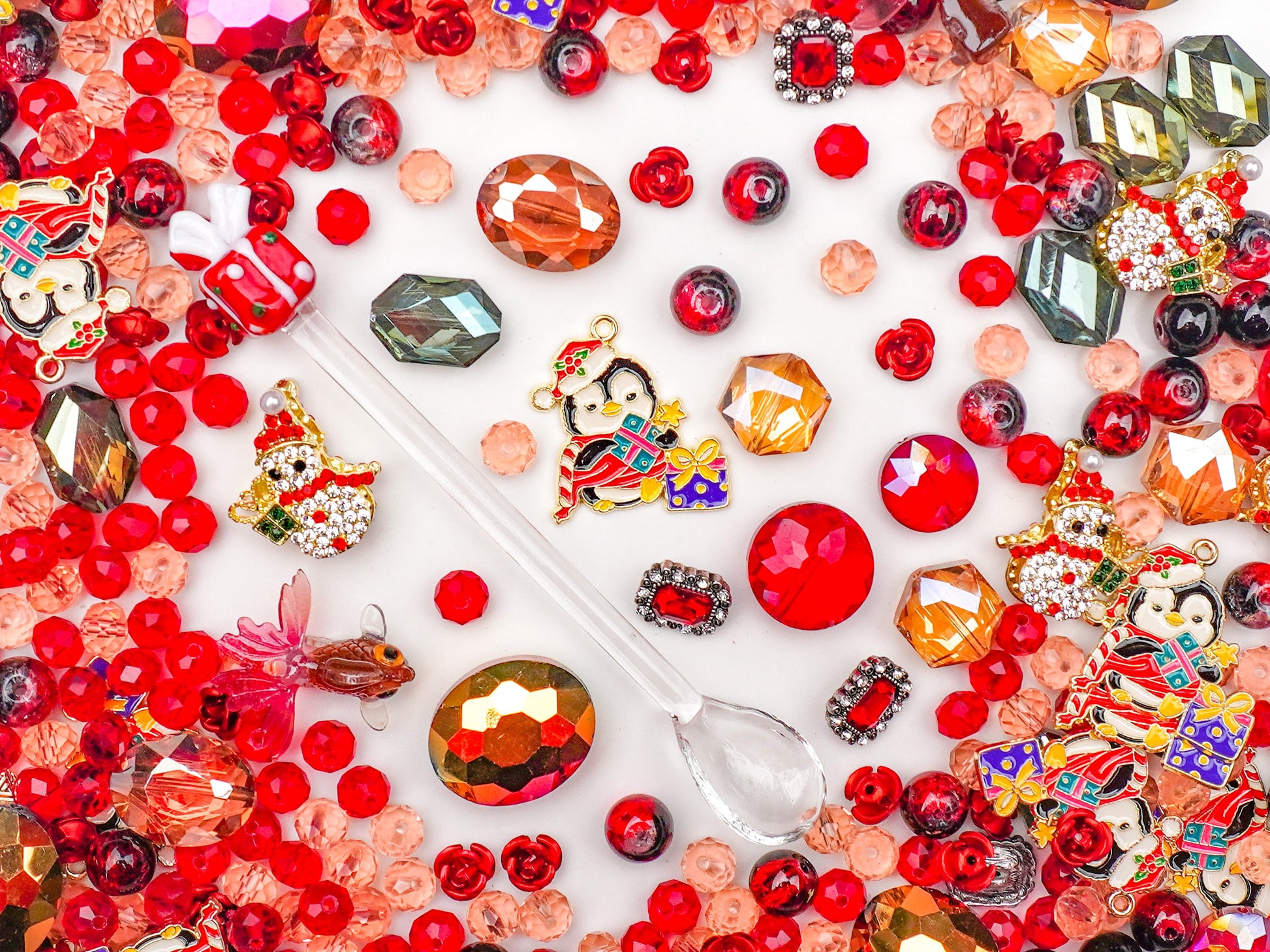 Step into the magic of the holidays with Winter Party, a festive mix that brings vintage cheer to life. Deep reds, golden ambers, and shimmering crystal tones come together in a joyful symphony of color, echoing the warmth of winter nights by the fire. Adorable charms—like penguins with gifts, sparkling snowmen, and ruby-toned gems—add a playful yet elegant touch. ❤️⛄