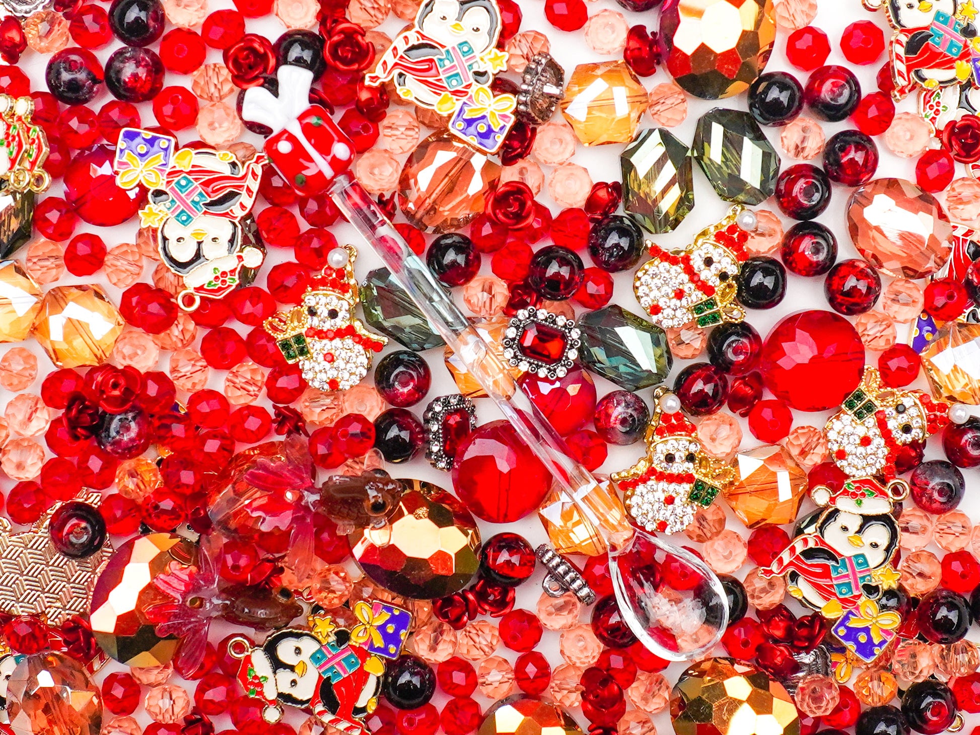 Every bead tells a story of celebration—glittering reds that glow like holiday lights, bronze accents that add a vintage flair, and crystal whites that sparkle like fresh snow. This mix perfectly captures that cozy yet glamorous holiday feeling.