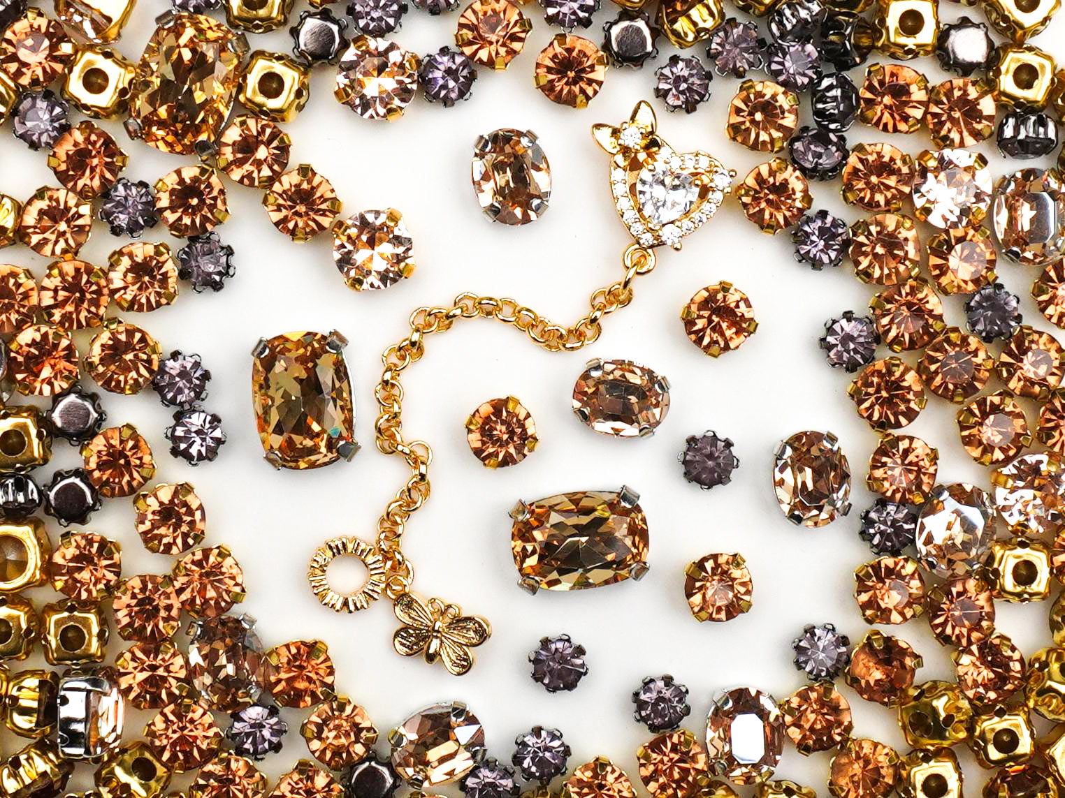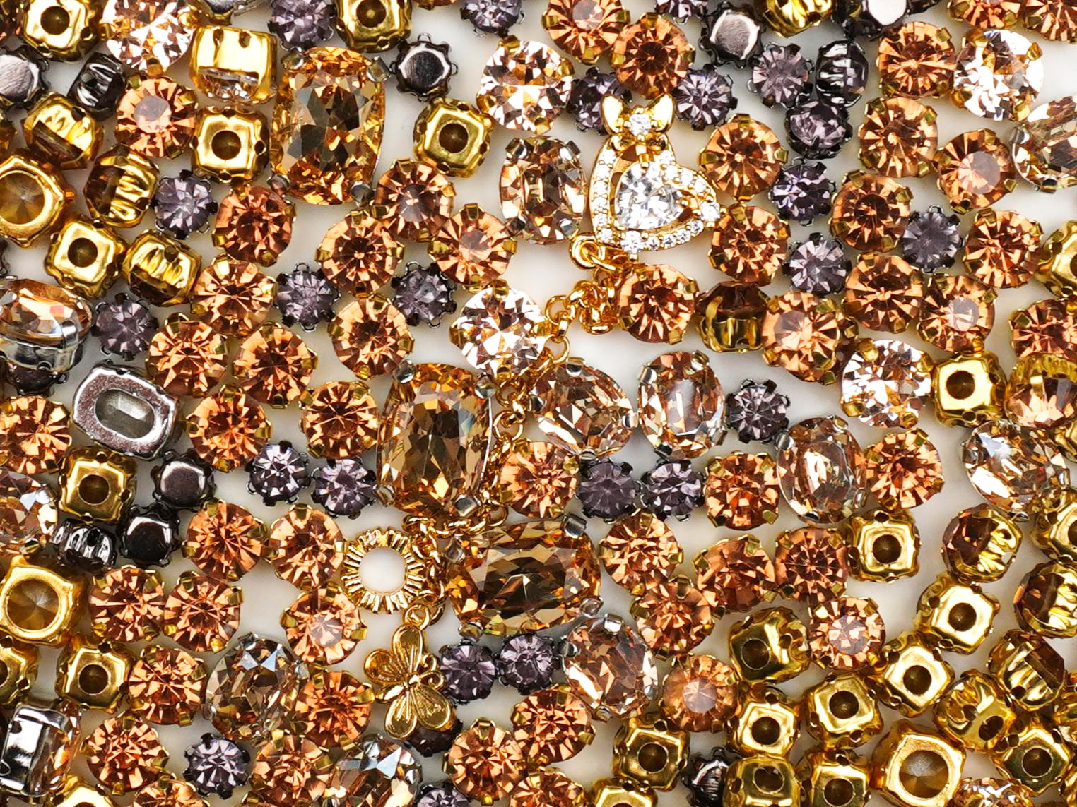 Step into your "main character" era with our Midnight Sun collection, where the golden glow of twilight meets the mysterious energy of the stars. This mix is giving major vintage-glam energy, blending warm, honey-toned crystals with moody, dusk-purple accents to create a look that’s both timeless and totally trending. Whether you're channeling a "Mob Wife" aesthetic or looking for that perfect "Old Money" sparkle, these charms are here to help you craft your own story.
