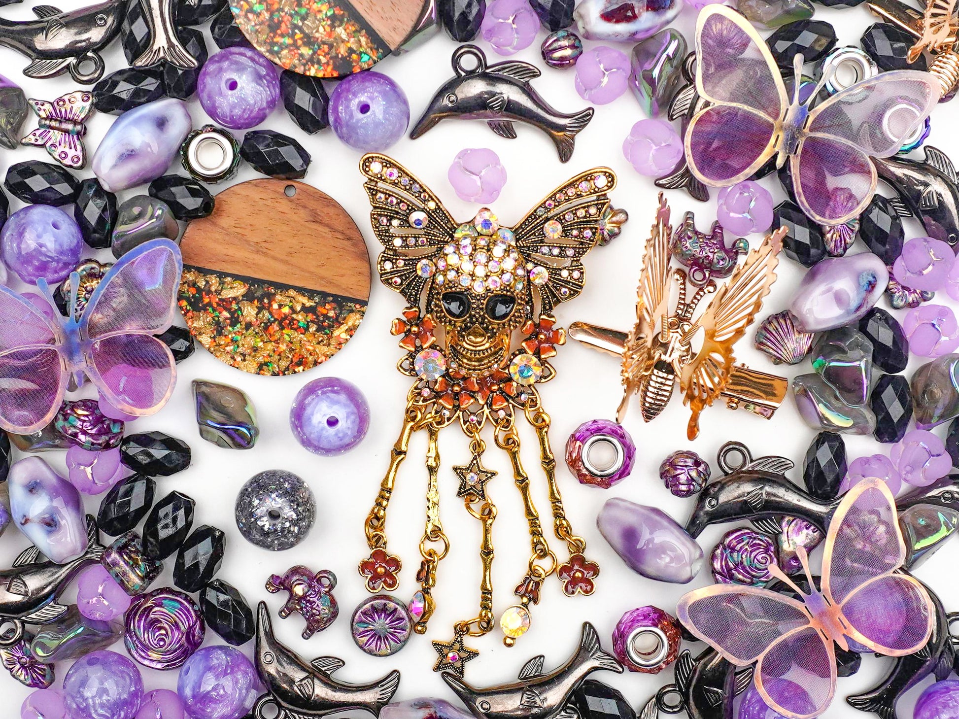 Unleash your inner dark romance with our "Violet Vamp" collection! 🦇🔮 This mix serves major Whimsigoth energy, featuring a show-stopping crystal skull moth with dangling gold chains that is low-key obsession-worthy. We’ve paired deep amethyst tones and moody black accents with delicate mesh butterflies and edgy gunmetal dolphins for that perfect edgy-meets-ethereal vibe. Whether you’re crafting a statement choker or a witchy phone charm, this set is your ticket to a bewitching glow-up. ✨🖤