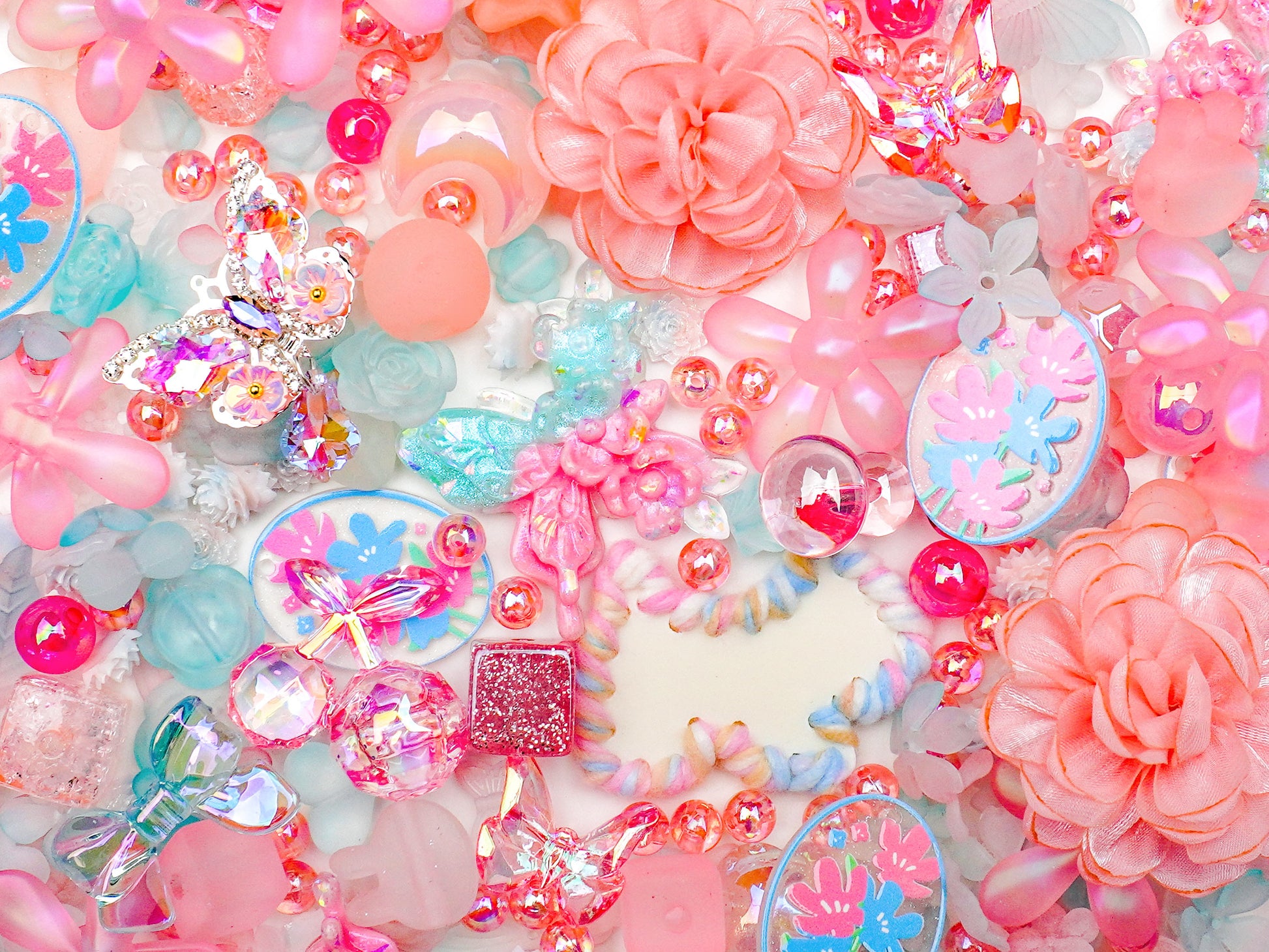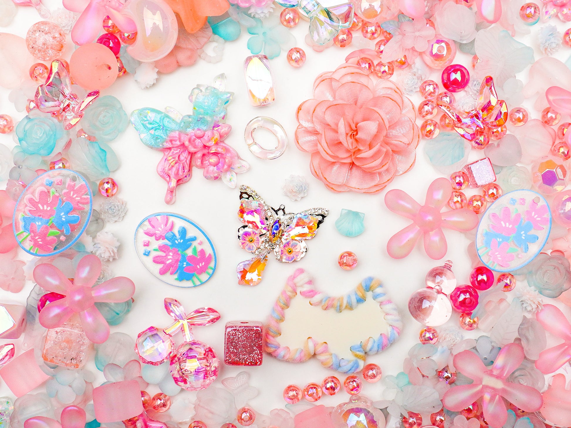 Featuring translucent florals, candy-colored butterflies, and glittering crystal charms, each piece brings a gentle, vintage glow to your DIY creations. It’s a pastel fantasy come to life — light, airy, and full of joy. 🦋💞