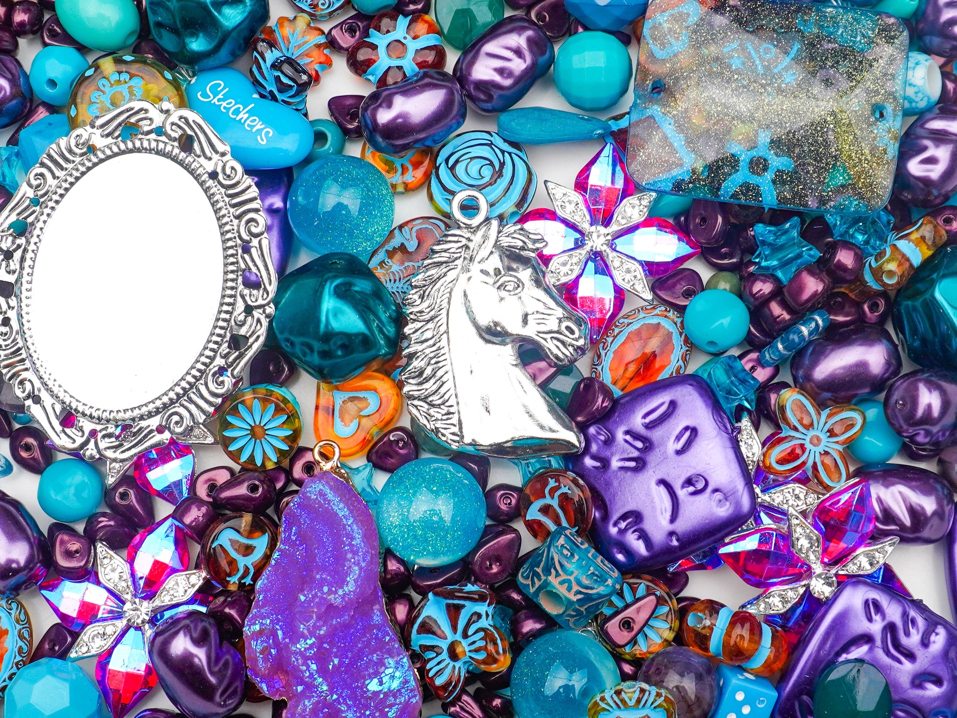 Ready to ride through the galaxy? 🤠🚀 Our "Space Cowgirl" mix is the ultimate retro-future dream, blending deep metallic purples with electric turquoise pops that scream 90s nostalgia. This scoop features majestic silver stallions galloping alongside cosmic geode slices and vintage-style ornate mirrors, giving you that perfect balance of Wild West ruggedness and interstellar glam. Whether you're hitting a festival or just channeling main character energy, this vintage-inspired bead soup is your ticket to the stars—saddle up, babe! 🌌💜