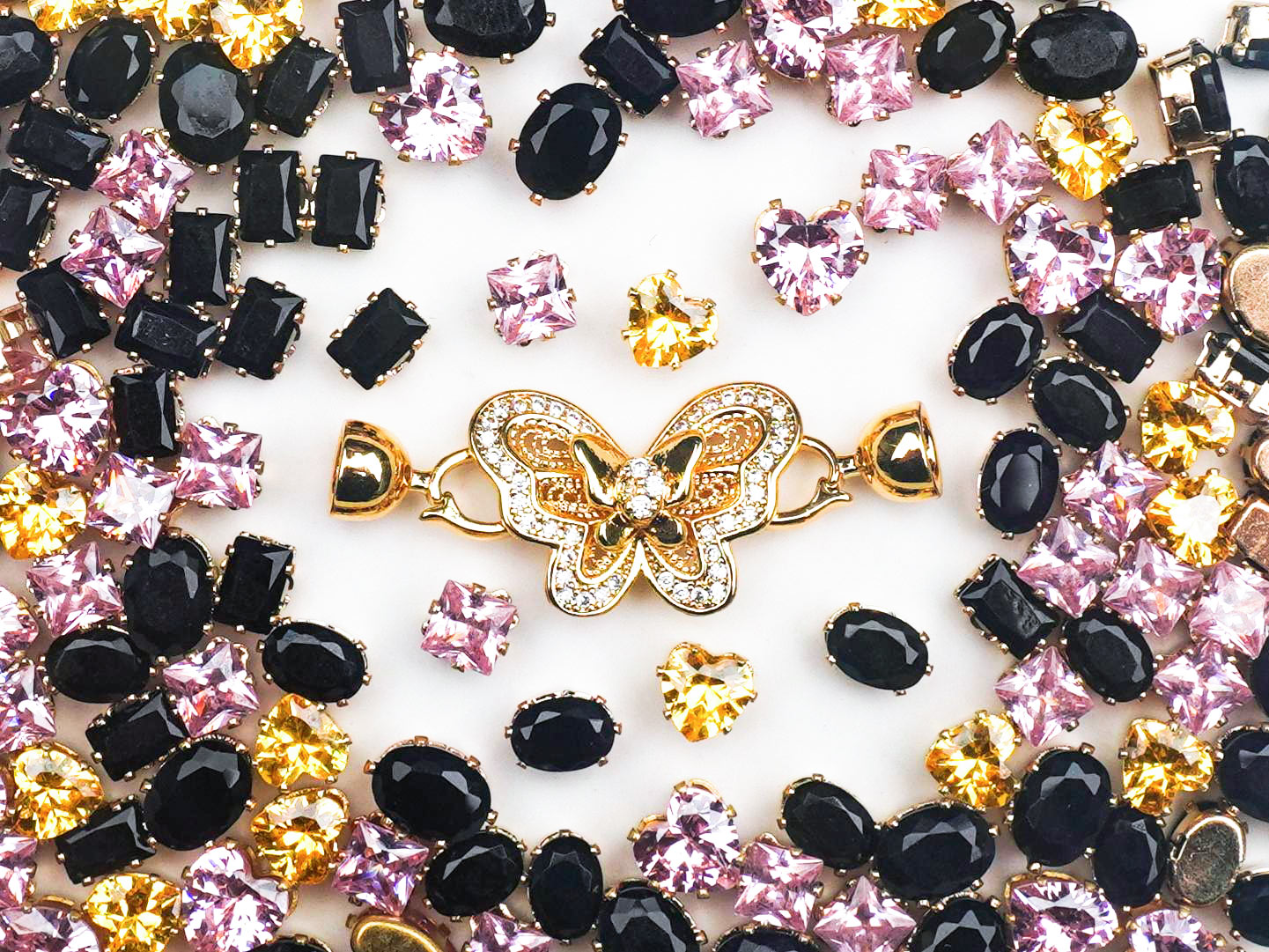 Step into your private vault with the Secret Gallery mix, where dark mystery meets absolute sparkle ✨. This collection is for the muses who love a bit of drama, featuring deep midnight black stones paired with romantic pink hearts that give off major Gothic Romance energy. At the heart of it all sits a breathtaking gilded butterfly, a true statement piece that feels like a rare find from a hidden vintage estate 🦋🖤.