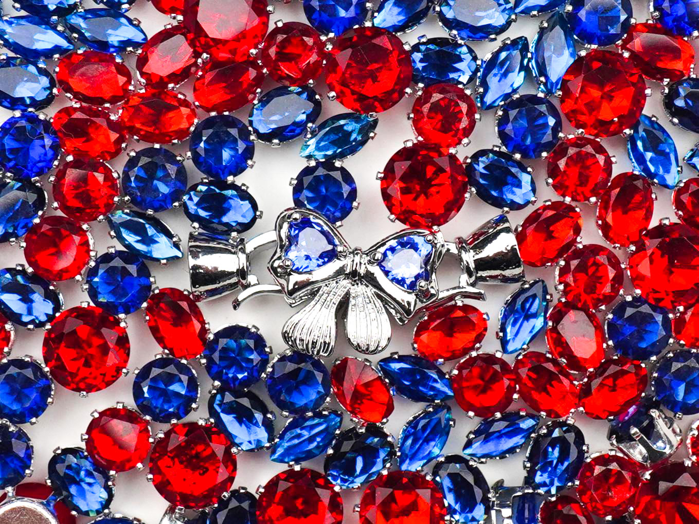 Master the art of the power clash. 🔥❄️ Introducing Fire & Ice—a couture manifesto curated for the muse who embodies both passion and poise. We’ve orchestrated a dramatic collision of elements, pitting the scorching intensity of ruby-red crimson against the piercing cool of royal sapphire blue. Anchoring this duality is our signature Twin-Heart Silver Bow, a structural masterpiece featuring cerulean hearts bound in polished chrome, symbolizing the perfect balance of emotion and logic. Flanked by sharp marquise-cut "flame" gems and brilliant round "ice" solitaires, this collection is a study in high-contrast luxury. It’s giving 'Wonder Woman Gala' meets 'Royal Crown Jewels'—the ultimate Vogue-approved palette for your most striking masterpiece yet. 👑❤️💙