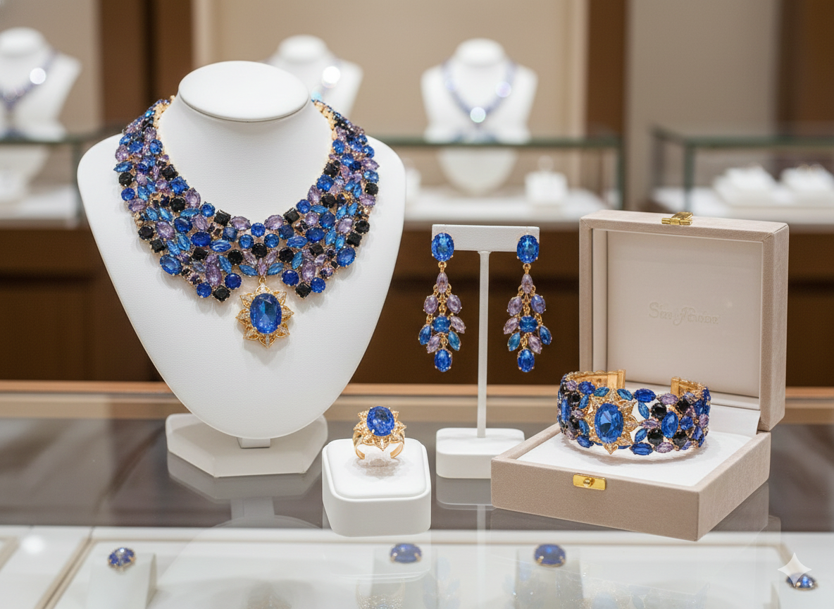 #LoveJulies #DeepOcean #VintageVibes #OldMoneyAesthetic #RegencyCore #SapphireBlue #DIYFashion #CrystalLovers #StatementJewelry #CraftYourJoy