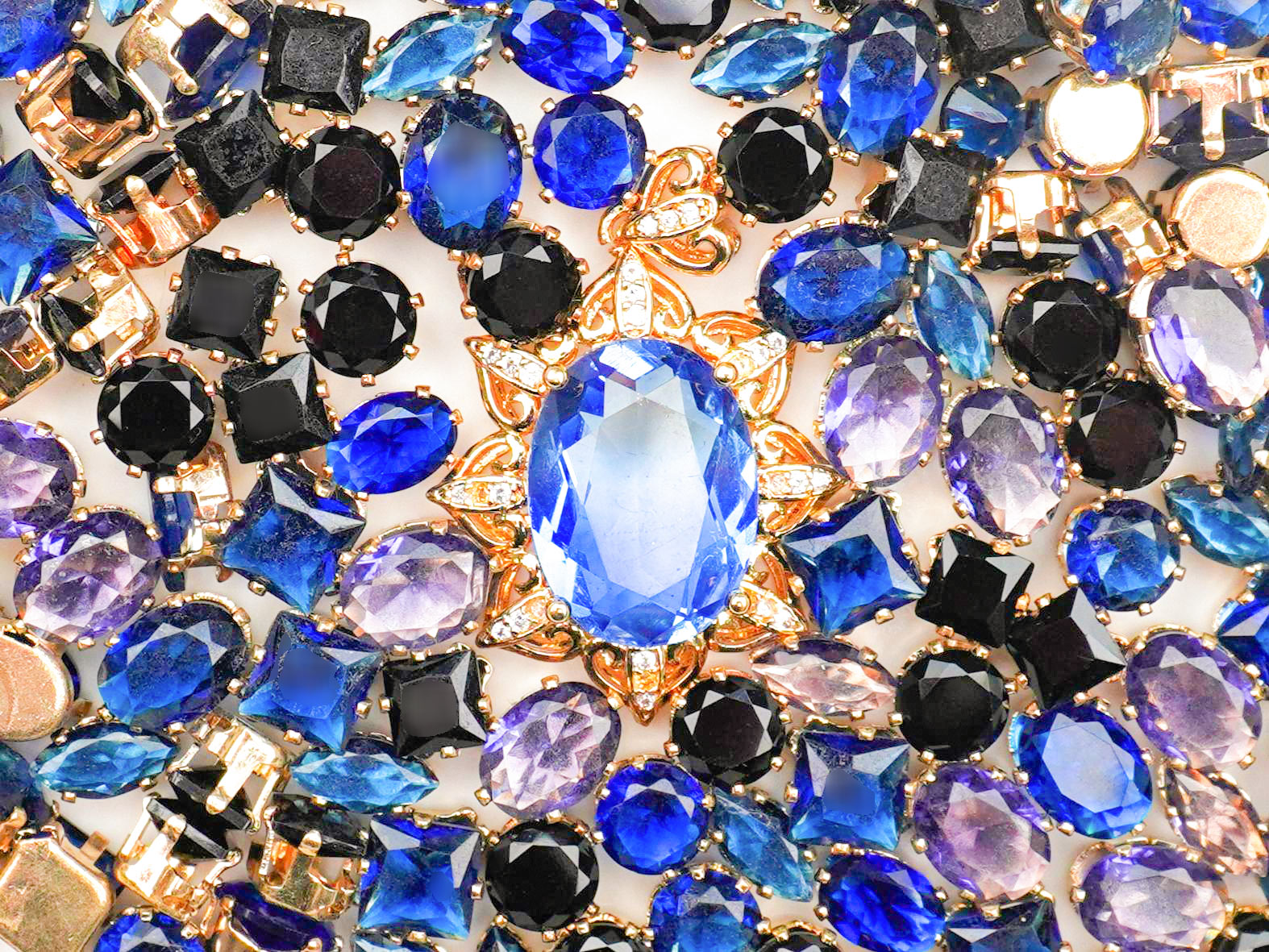 Dive into the mysterious allure of our Deep Ocean mix! 🌊 This collection is pure "Regency Core" luxury, featuring a breathtaking royal blue pendant surrounded by a sea of sapphire, violet, and midnight black crystals in vintage gold settings. 💙 It’s giving total Titanic romance meets high-fashion drama—perfect for that moody, elegant vibe. 🚢✨