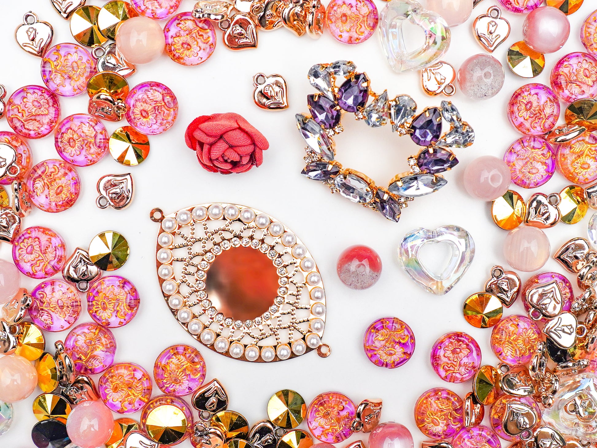 The purple-crystal heart crown adds a touch of royal romance, while the rosy beads, iridescent hearts, and golden accents create a delicate blend of sweetness and nostalgia. Every charm feels intentionally chosen — warm, feminine, and ready to turn your creations into romantic keepsakes.