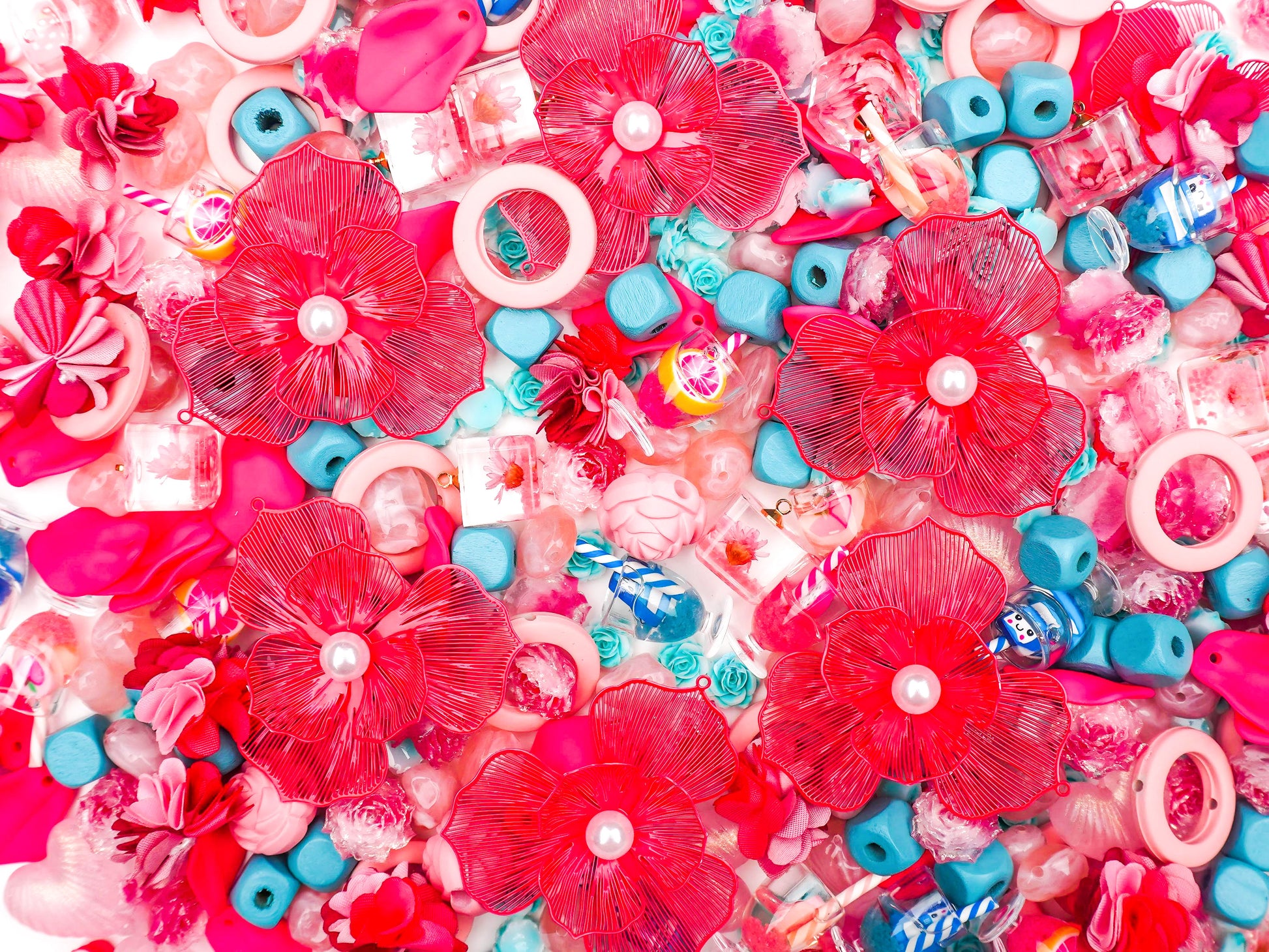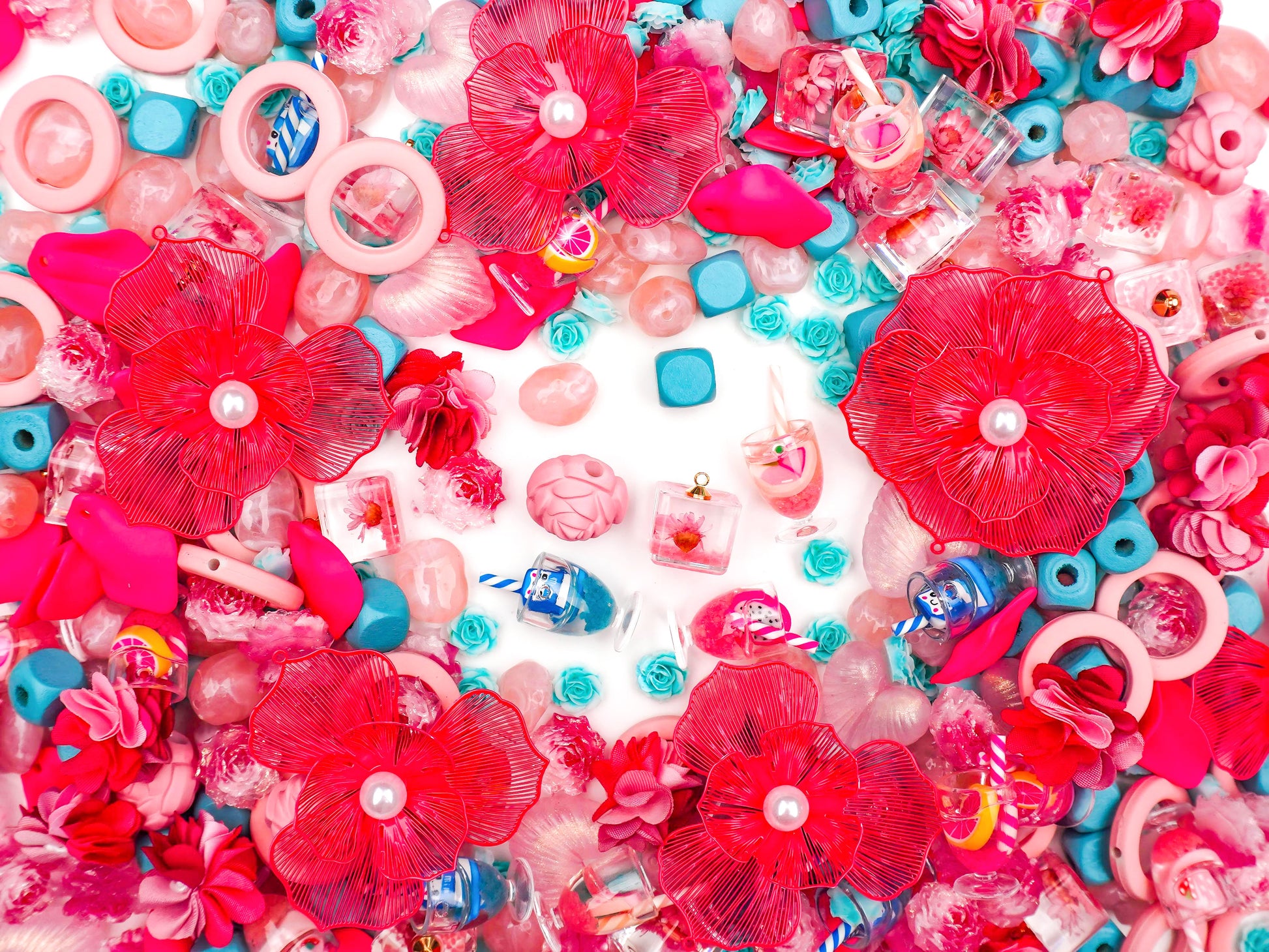 Pink Poolside is your dream summer cocktail in charm form 🍹🌺💦—featuring juicy pops of hot pink, tropical blue accents, playful drink charms, and oversized flower statements that scream poolside glam. Think fruity vibes, floating flamingos, and sun-drenched accessories that are totally main character energy.