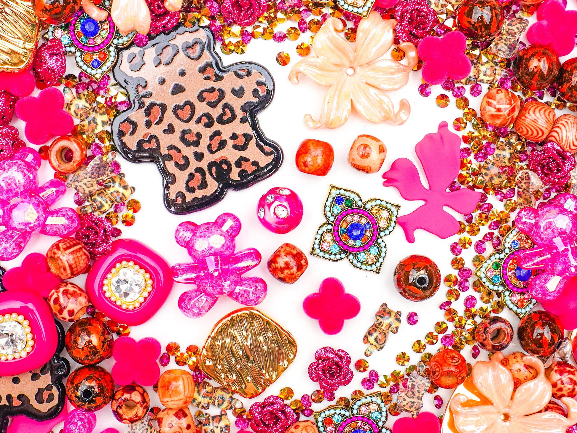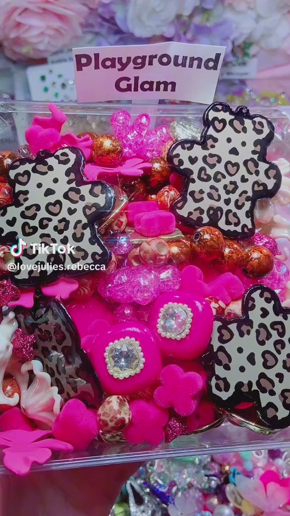 Bold, playful, and irresistibly stylish — Playground Glam brings a wild fusion of color and confidence. Hot pinks, shimmering golds, and fiery oranges collide with leopard prints, glittery teddy charms, and rhinestone florals for a look that’s both fun and fierce. It’s a vintage glam dream with a rebellious twist. 💅🔥