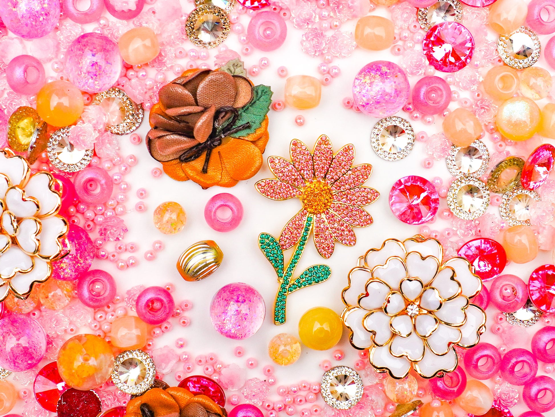 Soft, sunny, and full of vintage charm — Pink Afternoon captures the warmth of a lazy afternoon surrounded by flowers and golden light. The mix blends delicate tones of blush pink, peach, and ivory with touches of gold and amber, creating a romantic and timeless aesthetic. Each charm — from enamel florals to sparkling crystals — feels like a little piece of elegance frozen in time. 🌷💖